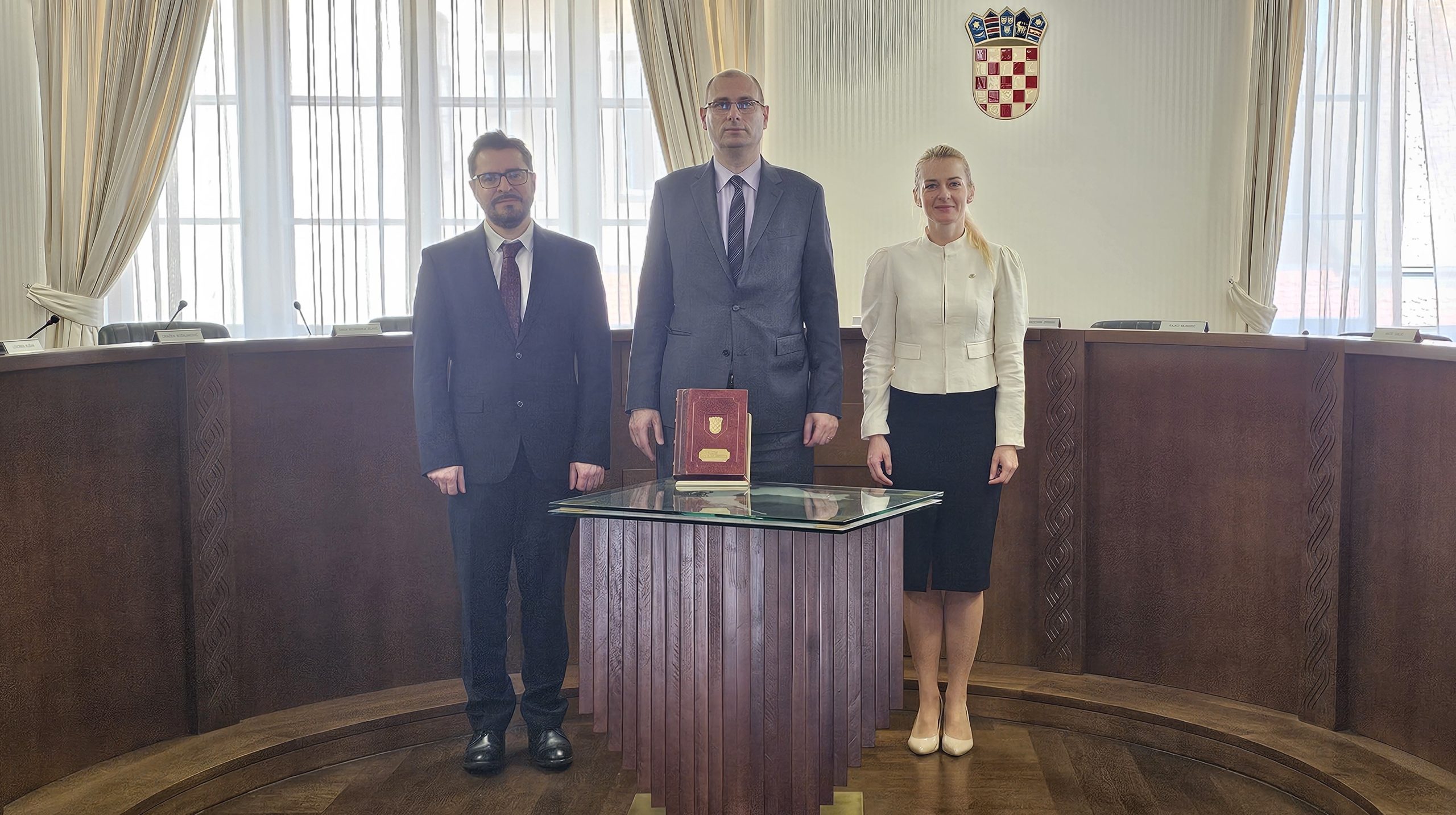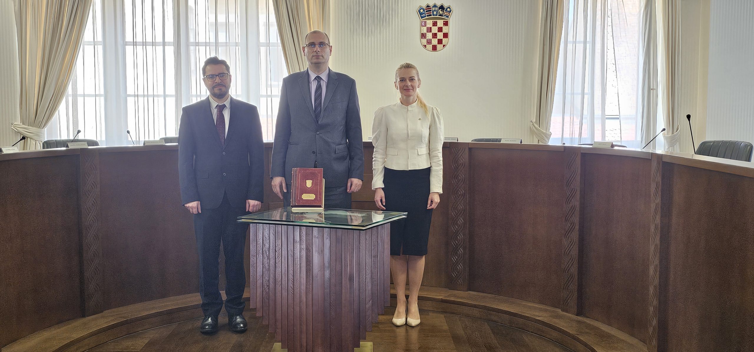 On 17 April 2026, Prof. Dr Frane Staničić, President of the Constitutional Court of Croatia, received a delegation from the Central European Academy of the University of Miskolc, consisting of Prof. Dr János Ede Szilágyi, the Academy’s Strategy Director, and Dr Katarzyna Zombory, its Research Director. The purpose of the meeting was to present the Academy’s recent scientific achievements and to explore avenues for further scientific cooperation.