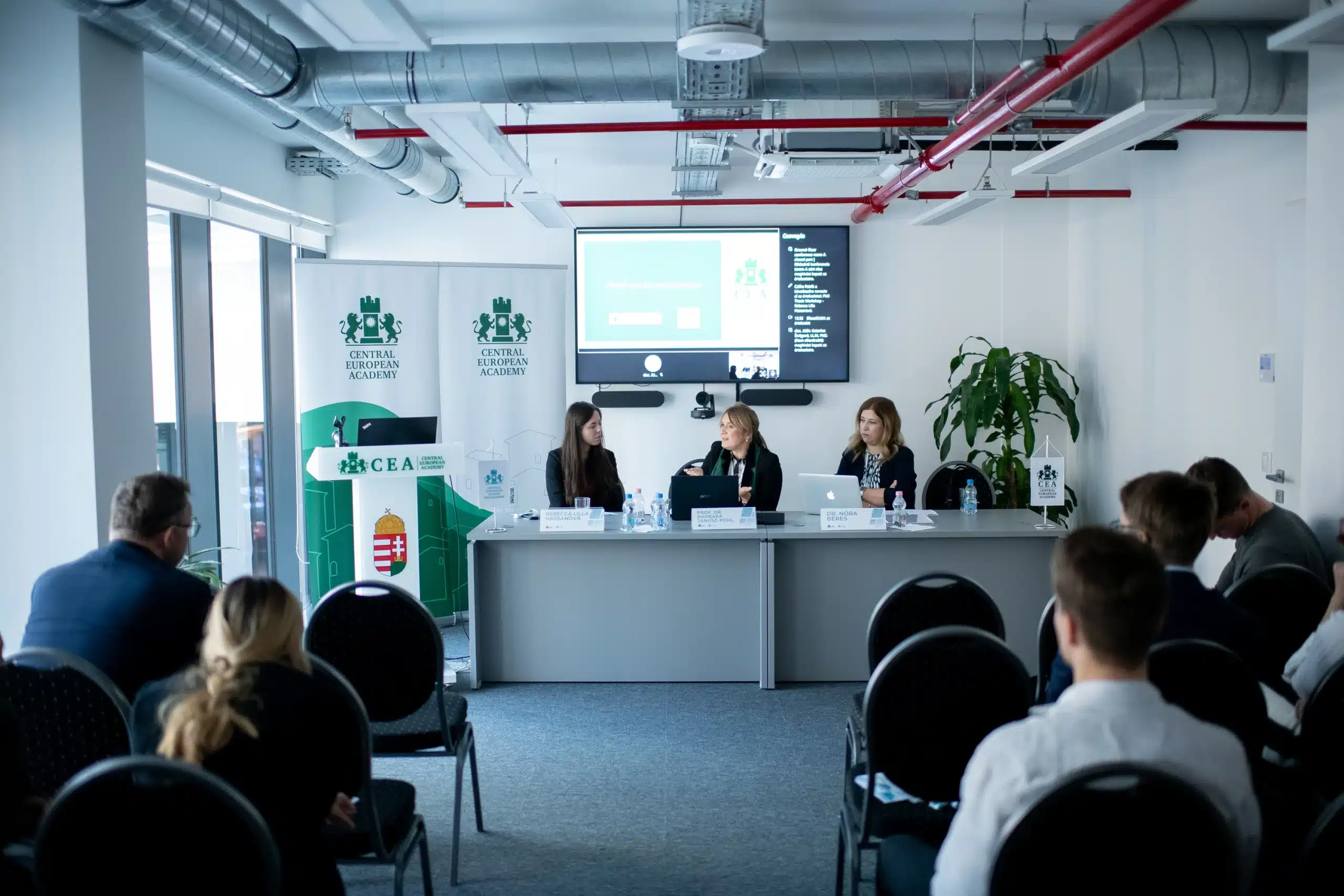On October 20–21, 2025, the “Thesis Workshop” organized by the Central European Academy was held. The aim of the event was to provide fourth-year doctoral students with practical experience in defending their dissertations. The workshop closely simulated the official defense process, allowing candidates to present their main findings and arguments, respond to criticism, and answer questions from experts. Each presentation was followed by a discussion with designated opponents, who provided constructive feedback and challenged the candidates’ work, thereby creating an opportunity to strengthen both content and presentation style.
